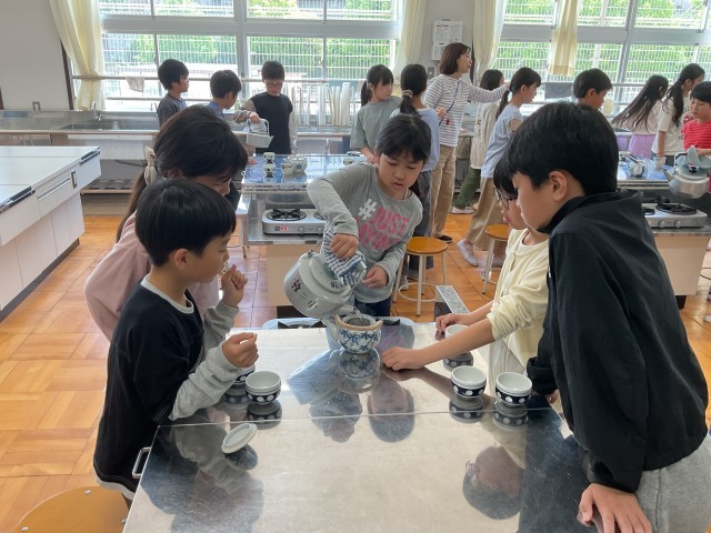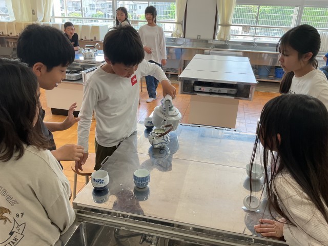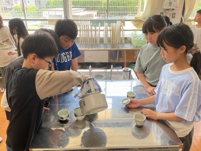 食器を用意して、急須にお茶の葉を入れて、やかんに水を入れて、お湯を沸かして、急須にお湯を注ぎます。