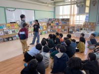 1時間目、5年1組は運動場へ出て、理科の実験、観察を行いました。タブレットも活用して学習に取り組みます。