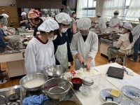 2年生は算数のかけ算の勉強、4年生は社会で「役立つ防災グッズ」について、6年生は総合的な学習の時間で調べた内容をタブレットを使って発表していました。