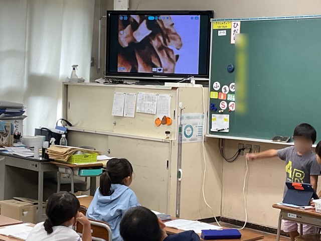例えば、まつぼっくりを見て どのような形に見えるか 言葉をつないで伝える という学習でした。