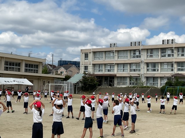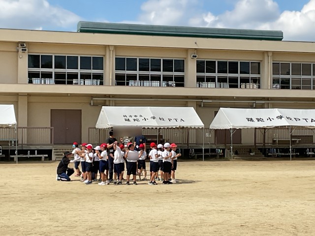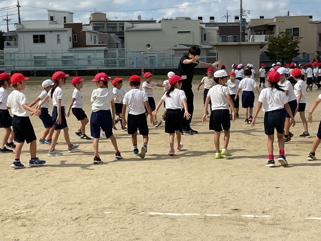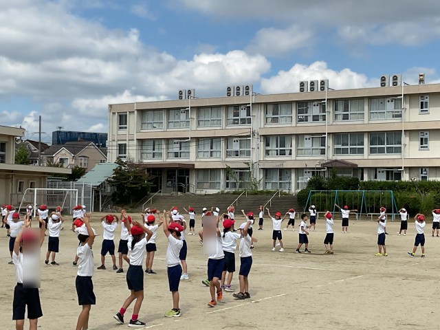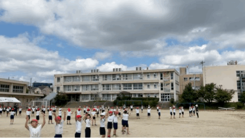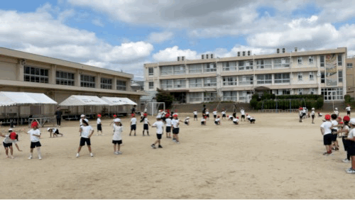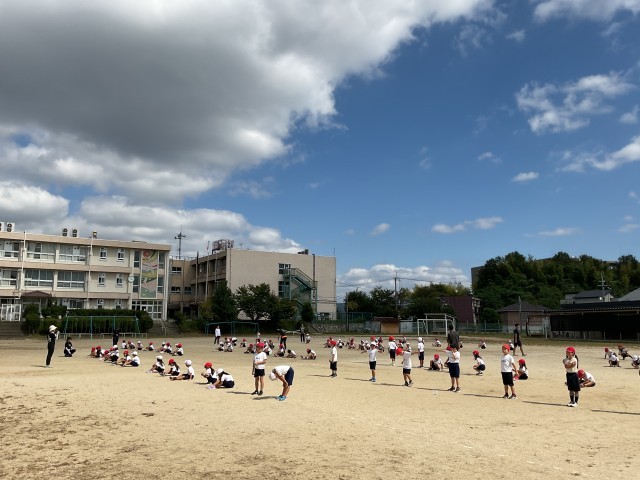 外での団体演技の練習が始まりました。