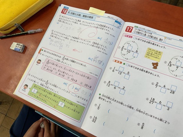 答えが分数で イメージが難しそうにしていましたが、順序立てて考えると