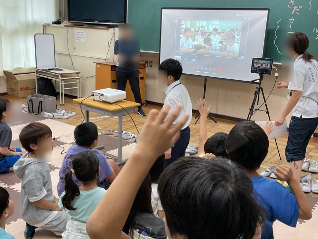 つながるやいなや「やったー」と歓声。終わりには、「友だちになって!」「いいよ!」と大盛り上がり。