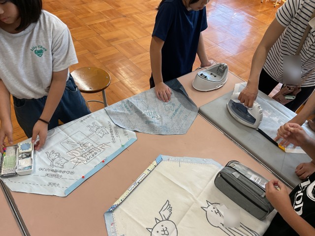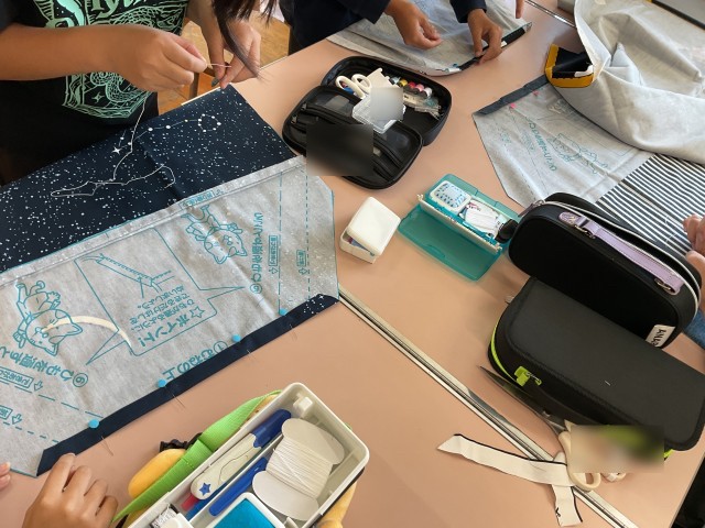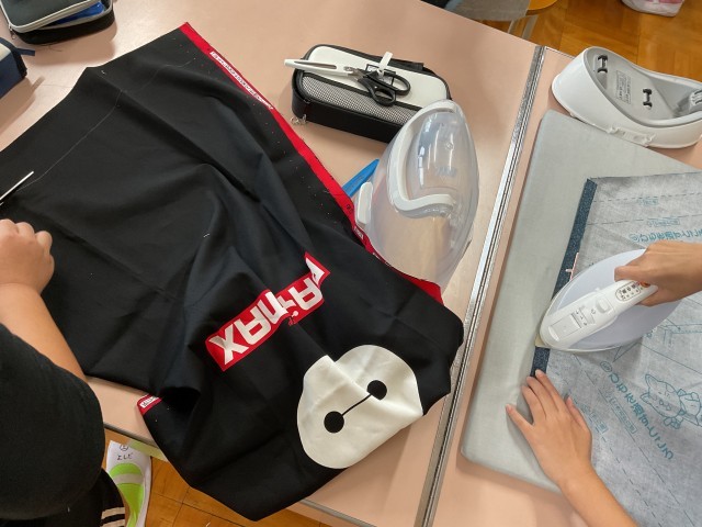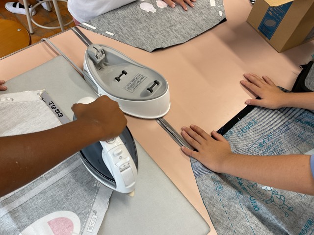 今日は、 アイロンで 折り目をつけて、その後、まち針、しつけをするといった内容です。