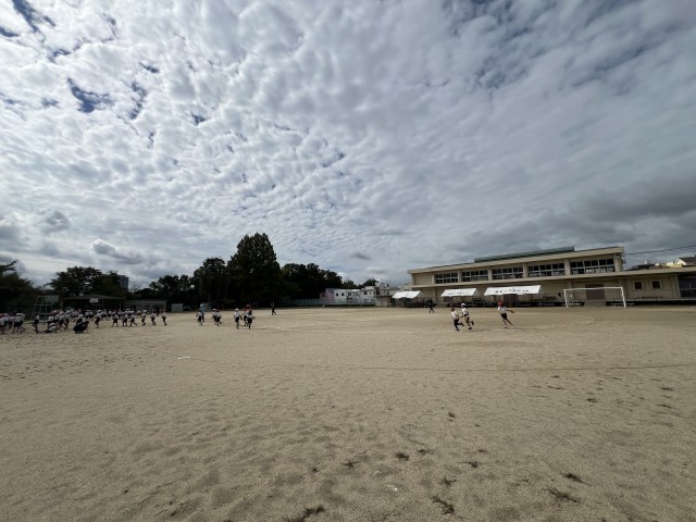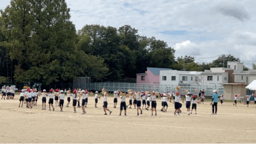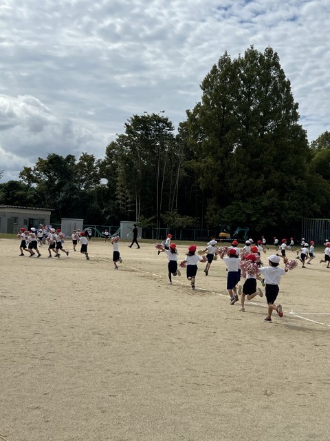 ぽんぽんをもって、通しで団体演技の練習をしました。