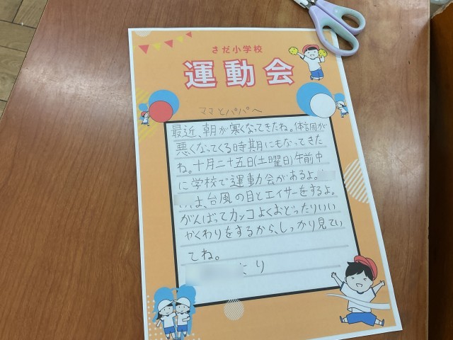 また、運動会に向けて 家族へのお手紙も書いていました。