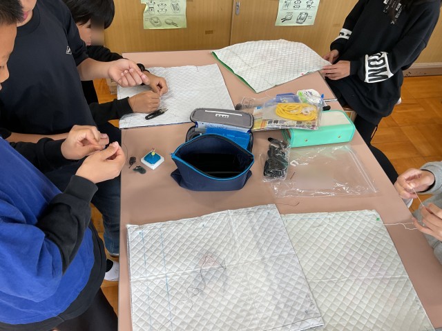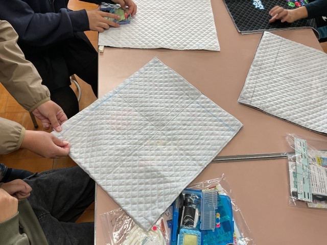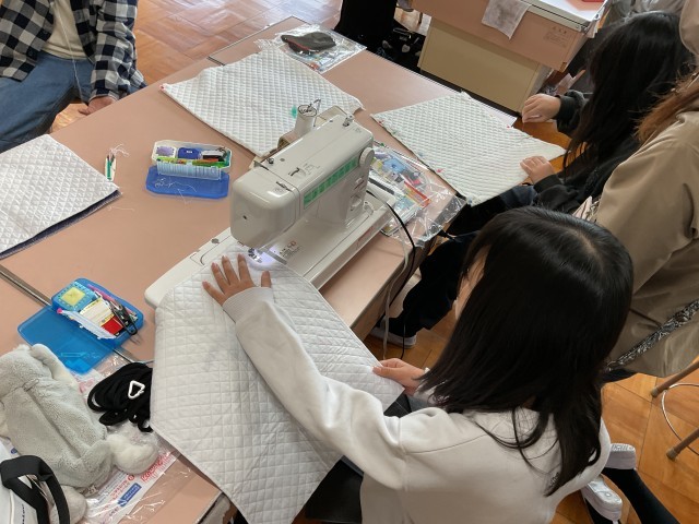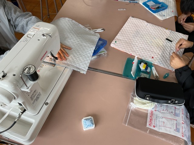6年生のみんなは、ミシンの上糸と下糸のテストを通過した上で臨んでいたとのこと