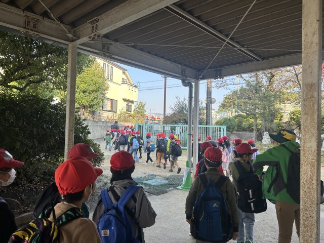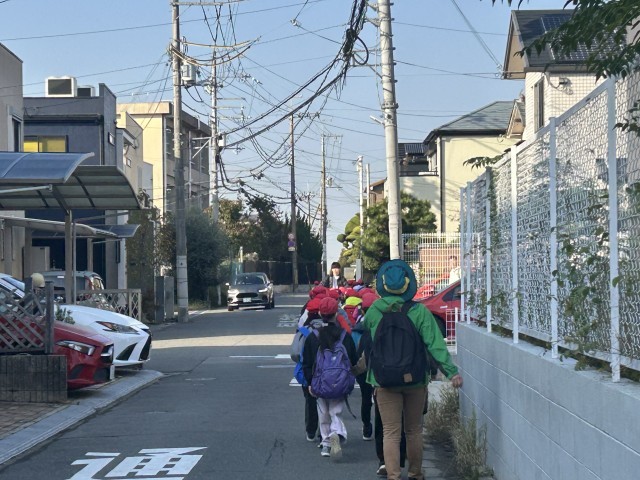 2年生の初めから取り組んでいる「町探検」で、校外での安全な過ごし方やマナー・ルールを守った行動を身につけた子どもたちがそのスキルを使えるかのテストでもあります。
