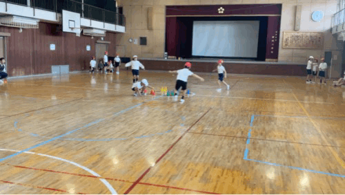 行ったり来たり、ハードな運動の楽しいゲームをしていました。