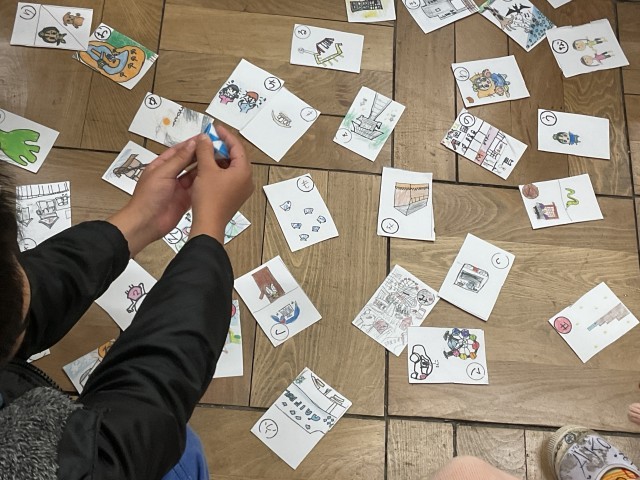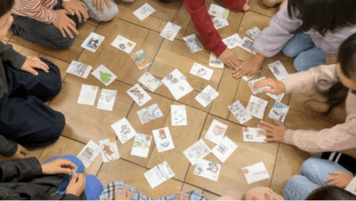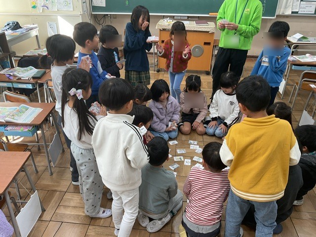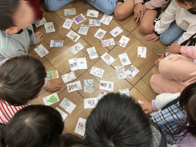 昨年の3年生が作った 「ひらカルタ」 を使ってさらに学習を深めていました。