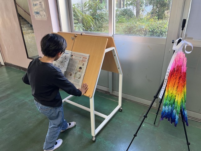ふと見ると、新聞を読みふける児童の姿。