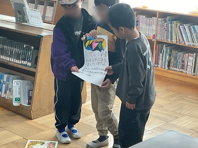 そして、今日は、2年生の「図書ボランティア」さんにインタビューした児童の