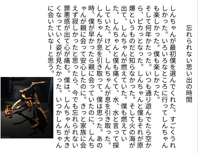 事前に学習していた 遺品との対話(遺品の気持ちになって)で書いた経験が