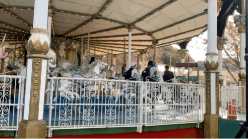 ゆったりメリーゴーランドを楽しむ子