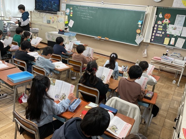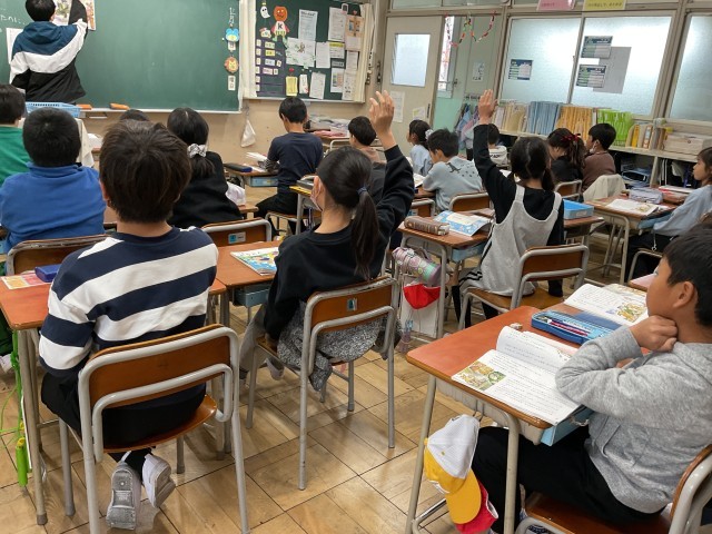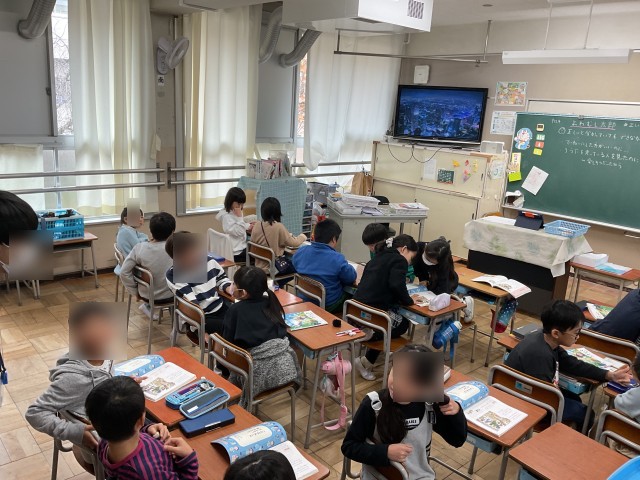 今日は、5年生の先生が、3年生のクラスで道徳の授業をしていました。
