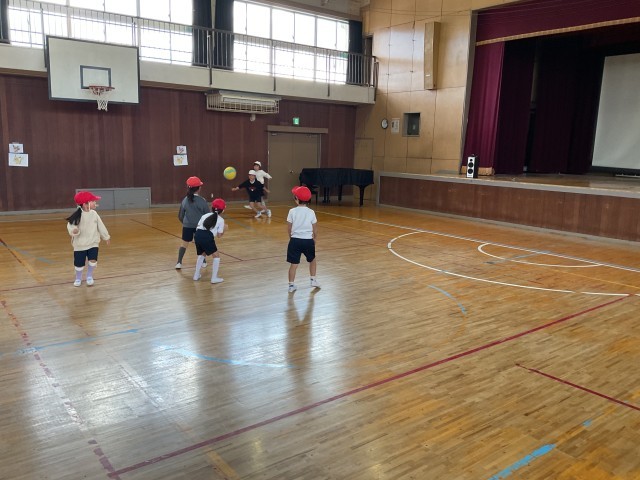 ボールを的に向かって投げたり、キャッチボールをしたり