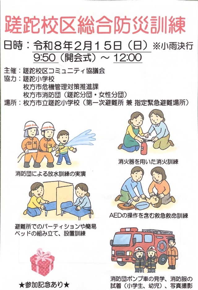 当日は、放水訓練の体験や避難所の体験などあるようです。