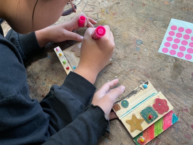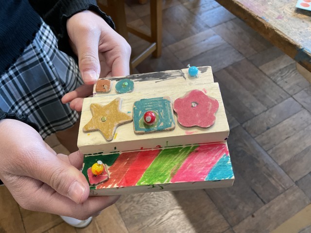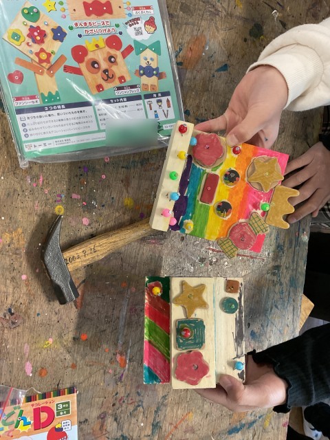 図工では、トントントントンッ と かなづち を使って
