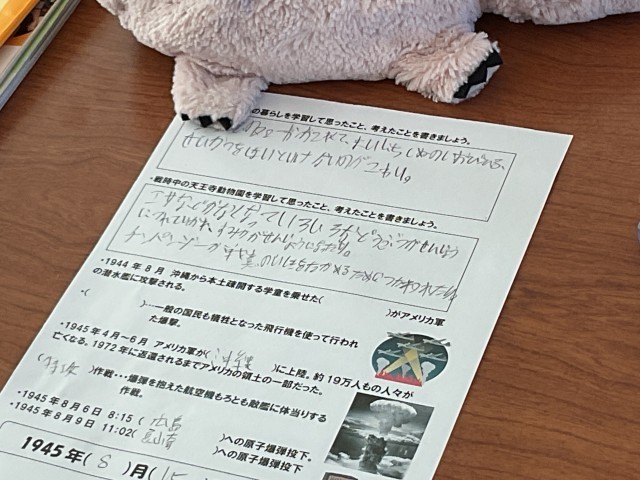 戦時中の 天王寺動物園の動物のことから平和について考えていました。