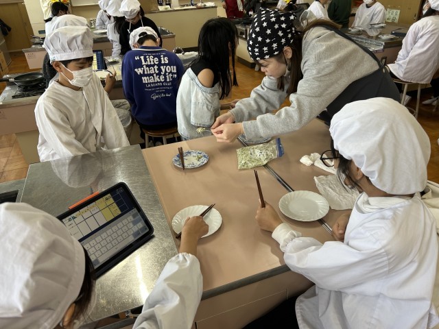 12月22日(月)3・4時間目(5−2)、5・6時間目(5−1)に、「ベジタベるプロジェクト」の大阪くろなの商品開発のための、試作品の試食を行いました。