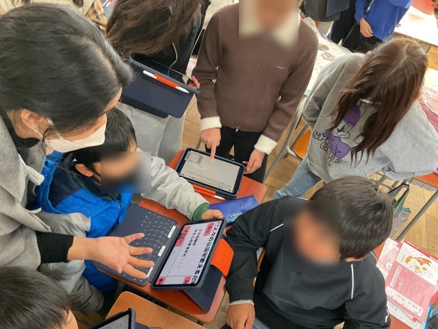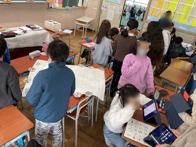今日は、多学年の先生もきてくれて、各グループの支援をしています。