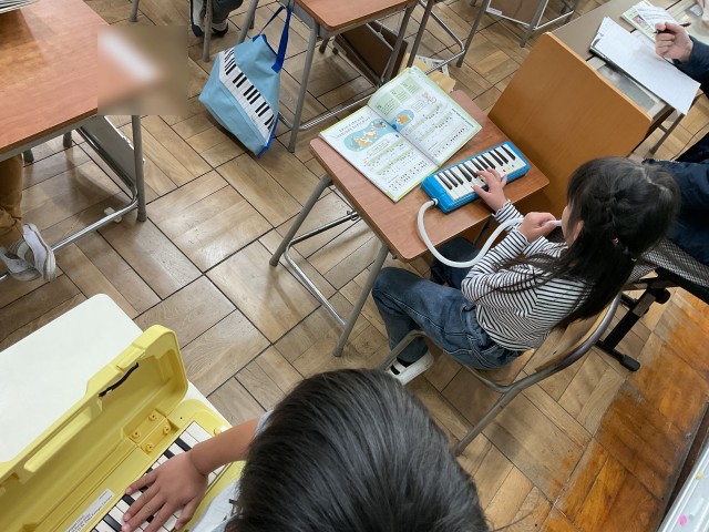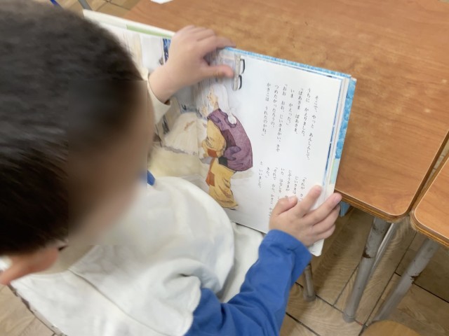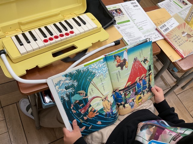 読みやすい絵本がたくさんあったり(絵本を読みながら 鍵盤ハーモニカのテストもしていました。)