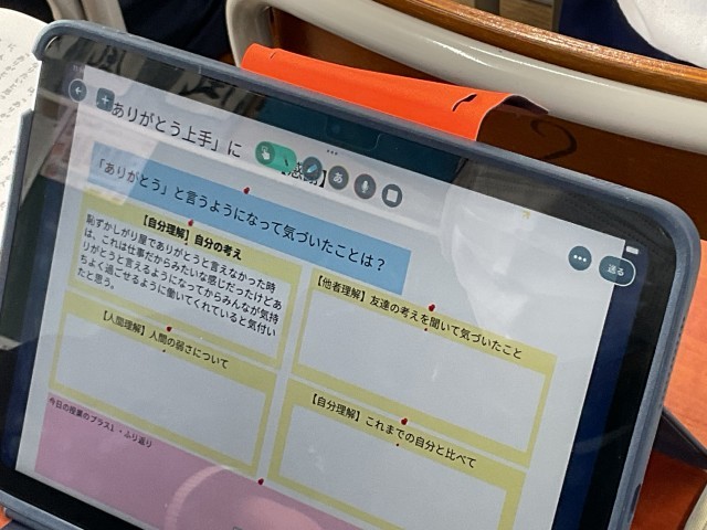 5年生の道徳では、「ありがとう上手に」という資料から考えました。