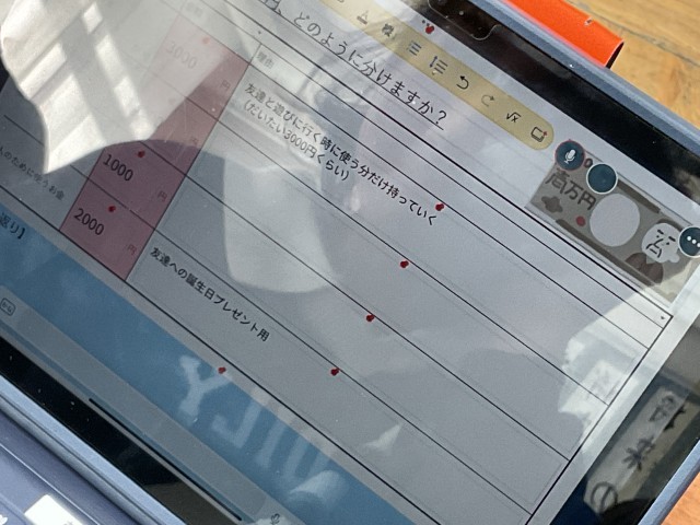 後半のワークでは、「大事な1万円をどのように分けるか」を考えました。①使うお金 ②ためるお金 ③増やすお金 ④人のために使うお金 の4つに分け、それぞれ理由も記入。人のために多く使いたい子、将来のために貯めたい子など、考え方の違いが表れ、とても深い学びの時間となりました。お金について真剣に向き合う貴重な機会をいただき、宮下さん、本当にありがとうございました。