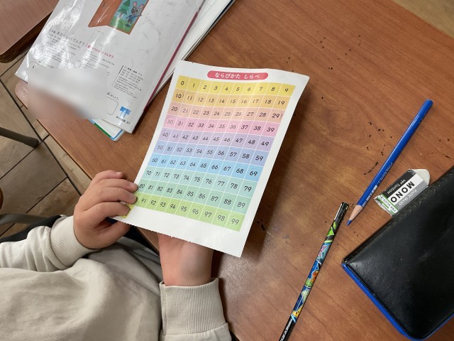 「あっ たてにみると ぜんぶ 3だ!(3、13、23、、、、93)」
