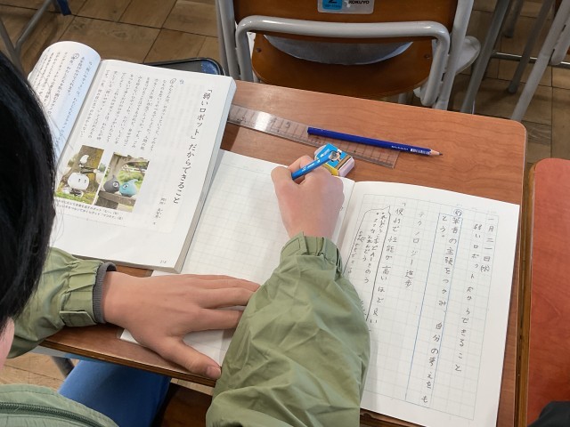 「弱いロボットだからできること」という教材を通し、子どもたちが筆者の思いを深めていました。