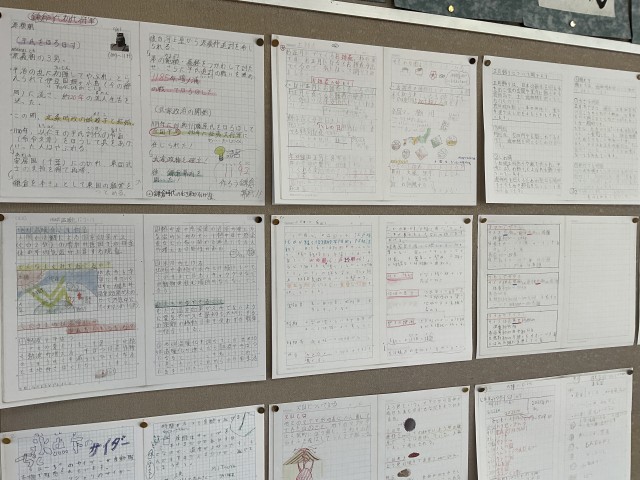 ふと、掲示物を見るとぎっしり自主学習の様子が、「氷点下サイダー」のことや「お正月料理」のことなどなど興味深いです。