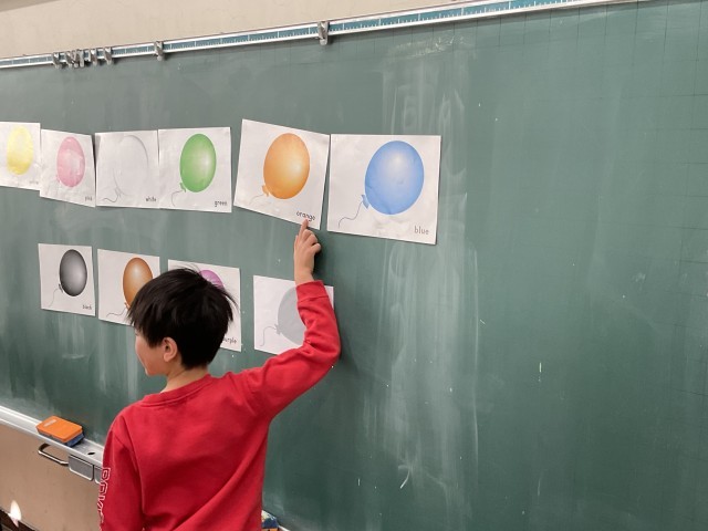 色とりどりの風船の絵カードをもとに
