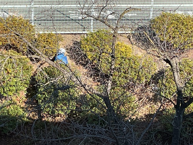 校務員さんが、寒いなか、丁寧に剪定。
