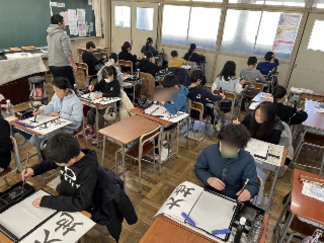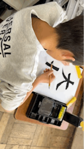 ファーストテイクやってみる子、細筆で感じをつかむ子