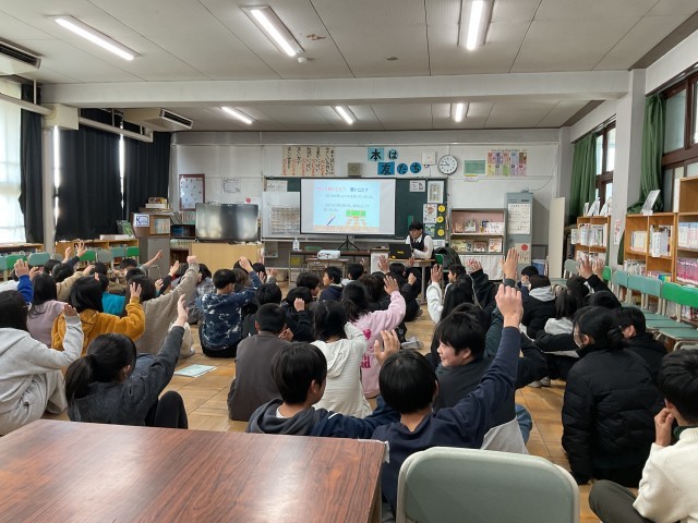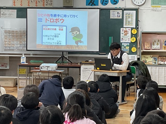 講師の方の問いかけに対し、子どもたちは「それはダメだと思う」「でも、こういう理由があるのかも」と、自分たちなりに真剣に考え、意見を発表していました。 警察の方は、子どもたちの等身大の言葉を優しく受け止めながら、それが法律ではどう扱われるのか、周囲にどんな影響を与えるのかを丁寧に紐解いてくださいました。