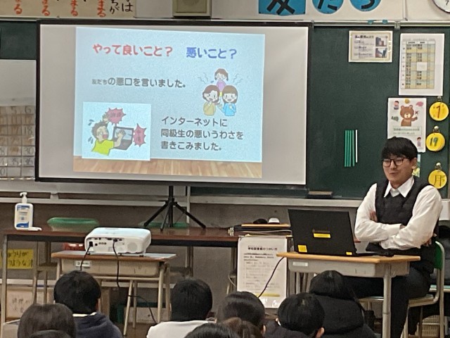 SNSのトラブルについてそして、ネットやSNSでのトラブルやなりすまし、「嘘の情報」かどうかについてなど しっかり時間をとっていただきました。子どもたちもよく考えていました。(子どもたちのSNSの活用状況にはおどろかされました。それでも自分たちなりに危険を語ってくれていました。)最後に、警察の方がお伝えしてくれたのは、「何かあればすぐに大人に相談すること」でした。みんな大きな返事で「はいっ」と言っていました。