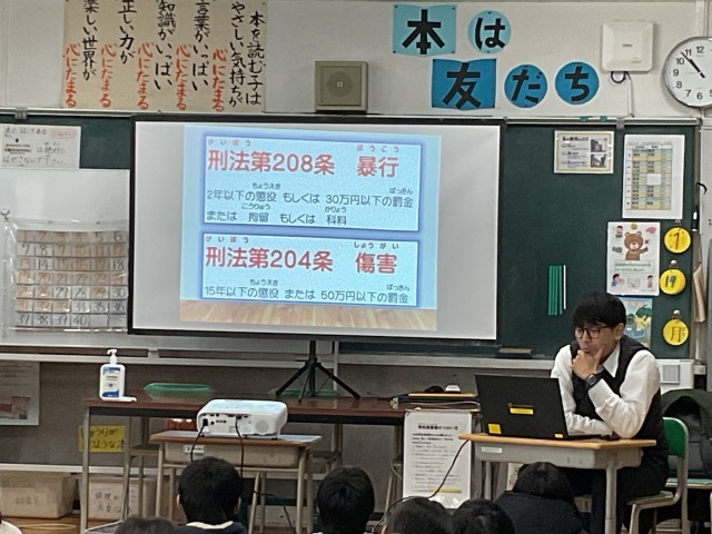 本日、枚方警察署の方にお越しいただき、子どもたちの身近な生活に潜むトラブルや法律についてのお話をしていただきました。