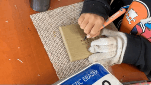 図工では、穏やかなBGMのなか