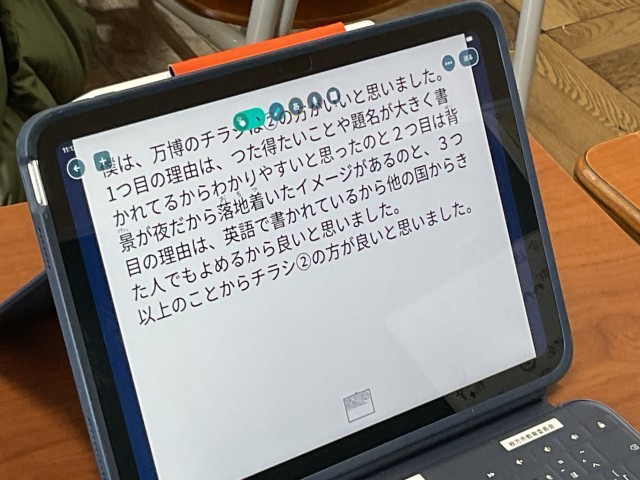 「1のポスターです。万博といえばみゃくみゃくです!色も鮮やかで、どんな場所かわかるからです。」