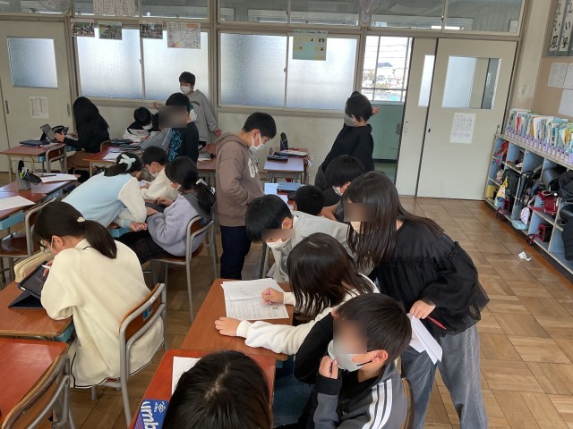テスト前の学習、一人で、ペアで、グループで なんだか楽しそうに進めていました。