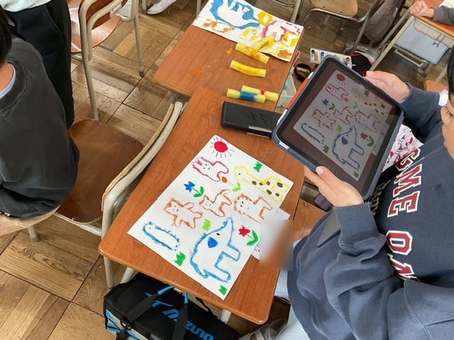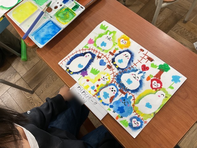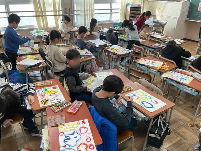 図工では、色鮮やかな作品ができあがっています。