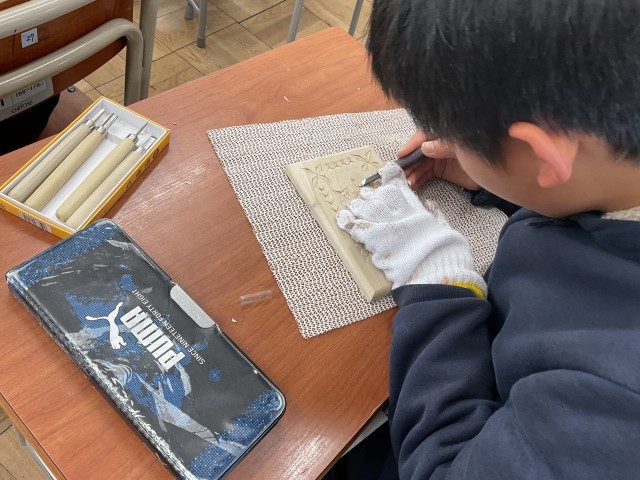 図工では、まさに「全集中!」といった雰囲気 先生から「休みにしよう〜」と休憩を入れながら進めていました。