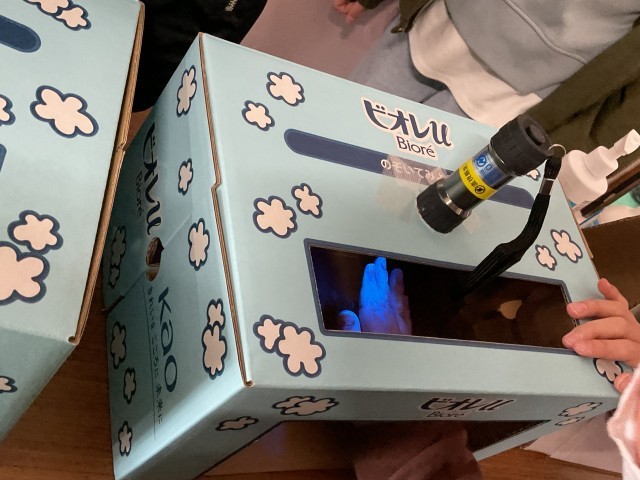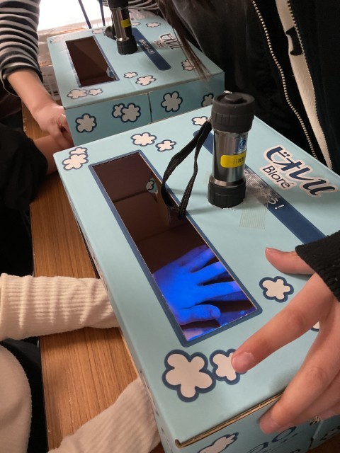 手洗いの洗いのこしがわかる実験器具を使って