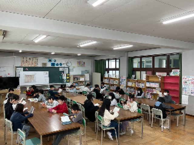 図書では、思い思いの本を手に取り、集中して読んでいました。