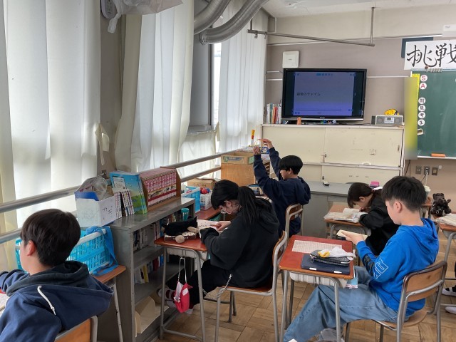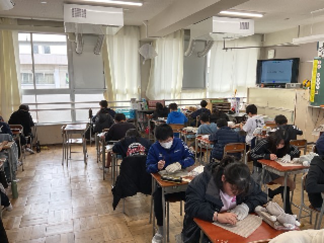卒業式で歌う歌のBGMのなか集中して彫っていました。