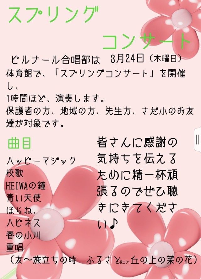 3月24日 合唱部 スプリングコンサート🎵
