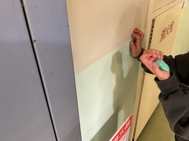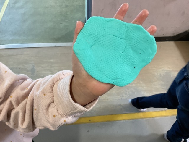 壁に粘土を押し当てたり、「ぼこぼこした場所知りませんか?」と粘土片手に聞かれたり