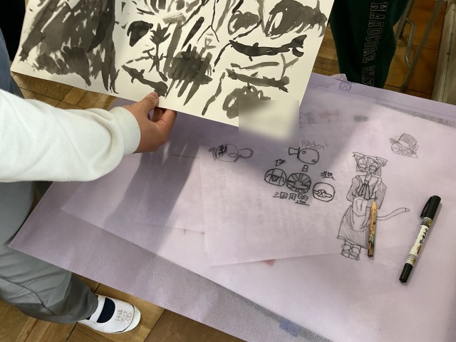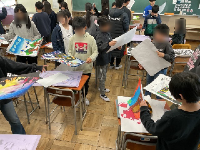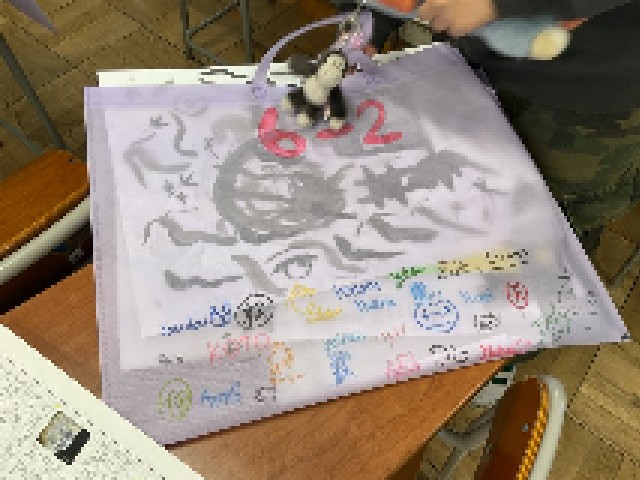 図工作品のバックには、寄せ書きも。