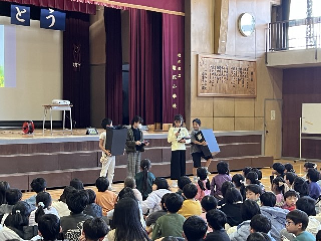 4年生から アップサイクル製品の売り上げから 全クラスに これまでなかった プラスチック用ゴミ箱が設置されるという発表がありました。素晴らしいですね。本当にありがとうございます。