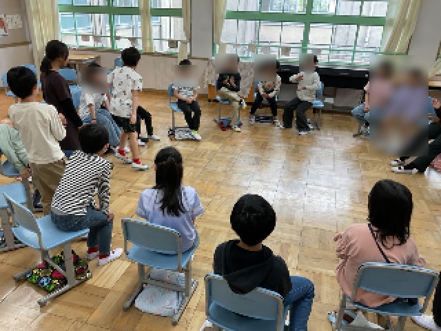 音楽では、自己紹介をリズムに合わせて行なっていました。